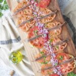 "Coeur de boeuf" tomatoes are fantastic in this dish. The sweeter the tomatoes, the better...they taste strong with the saltiness of the anchovies. This dish is on many menus here in the south, simple but super tasty!
