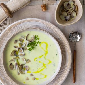 Trefwoord: eenvoudig soep recept, feestelijke soep, vongole, romige soep, soep met schelpjes